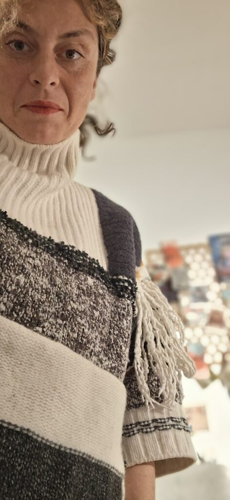 Her material choices feel intentional, so I asked how working with textiles influences meaning in her work. What does this medium allow her to say that language cannot?