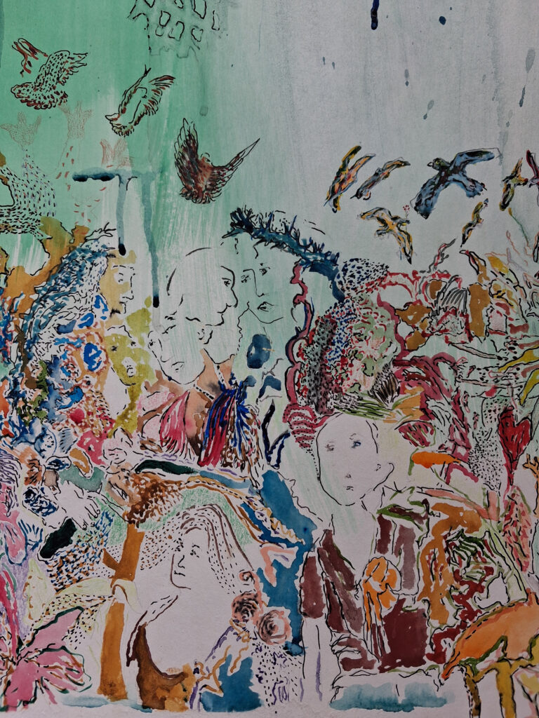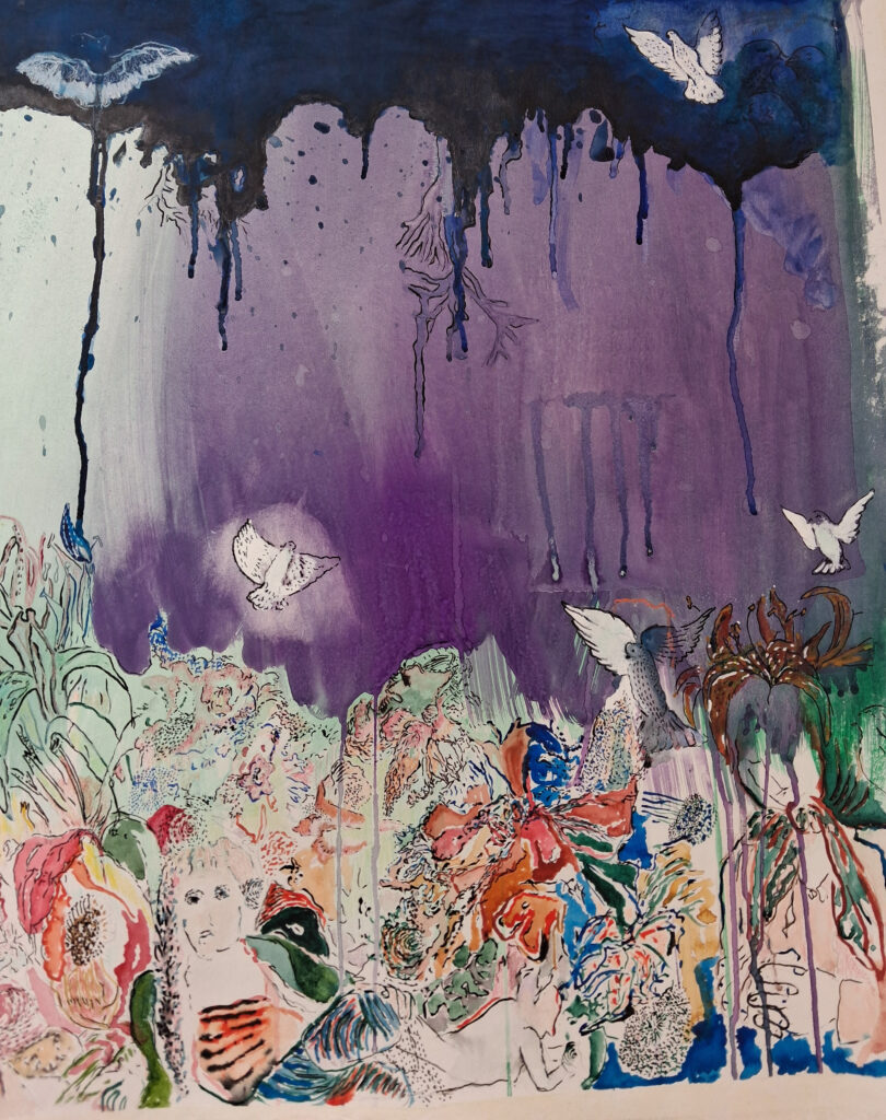 I grew up in Portugal, in a household where there was very little room for expression and for showing emotions, especially for a Woman. Also, in a Country and in an environment where sensitivity and creativity were not cherished neither valued. In my early twenties I had a massive breakdown and moved to London and started drawing at home, by myself. At that time, I worked in advertising, and it took me quite a while to take making art more seriously. Being in London really shaped me and opened my eyes and heart. Just going to exhibitions and Reading about artists life’s helped and inspired me and made me feel much less lonely.
