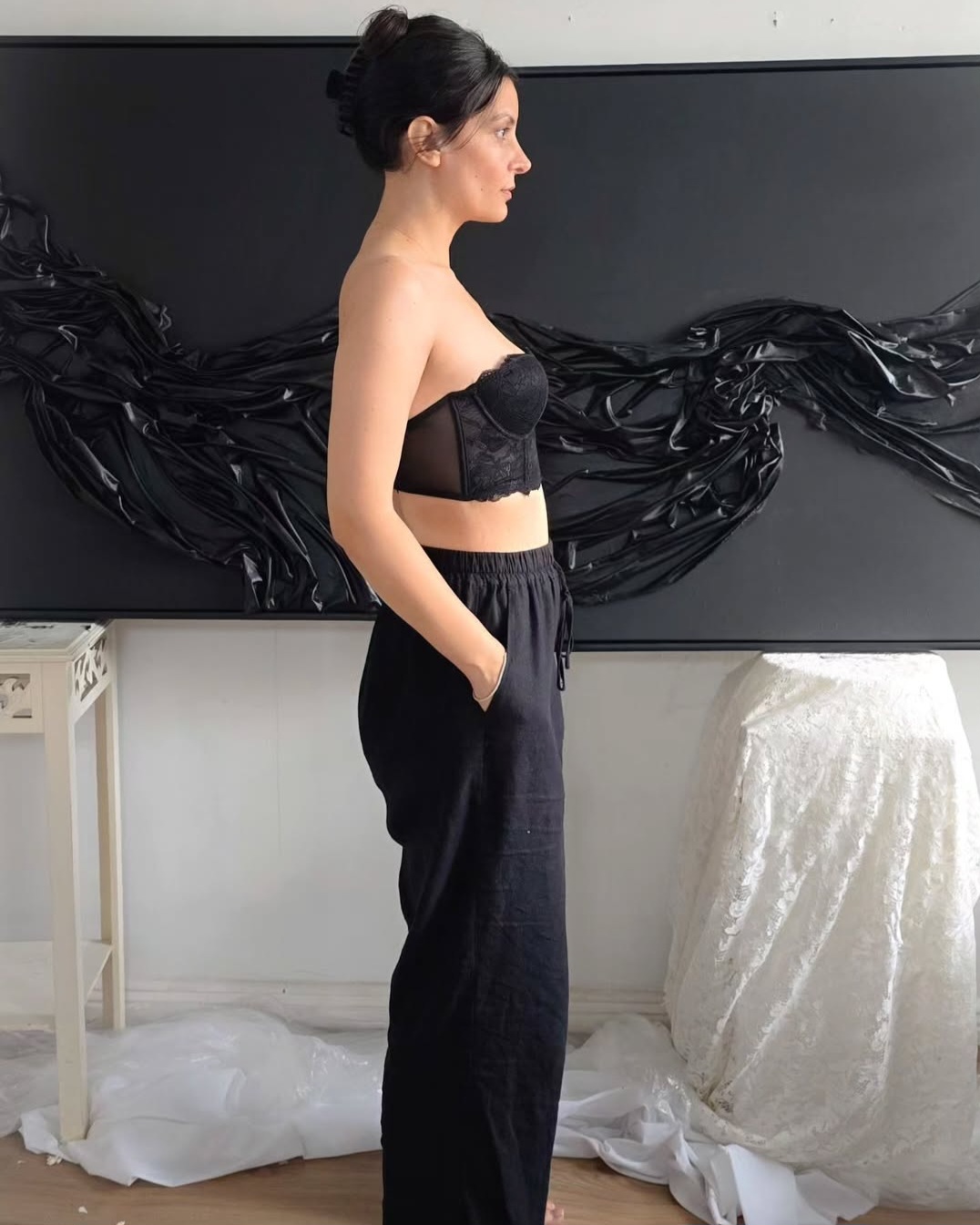 Lina Kay is a Sydney-based sculptor and mixed-media artist whose work turns softness into strength. Over the past 14 years, she’s built a practice centered on calm, texture-rich sculptures that explore emotion, stillness, and the beauty of minimalism. Working primarily with textiles, fabric, and raw materials, Lina’s pieces are known for their quiet presence. She often works in shades of white, cream, and soft neutrals not out of restraint, but as a way to process and express emotion. As someone who lives with synaesthesia, Lina experiences the world in heightened sensory layers. For her, using the absence of colour isn’t a limitation, it’s a form of clarity. “While some artists use colour to express their emotions, I use the absence of colour to express mine,” she explains.
