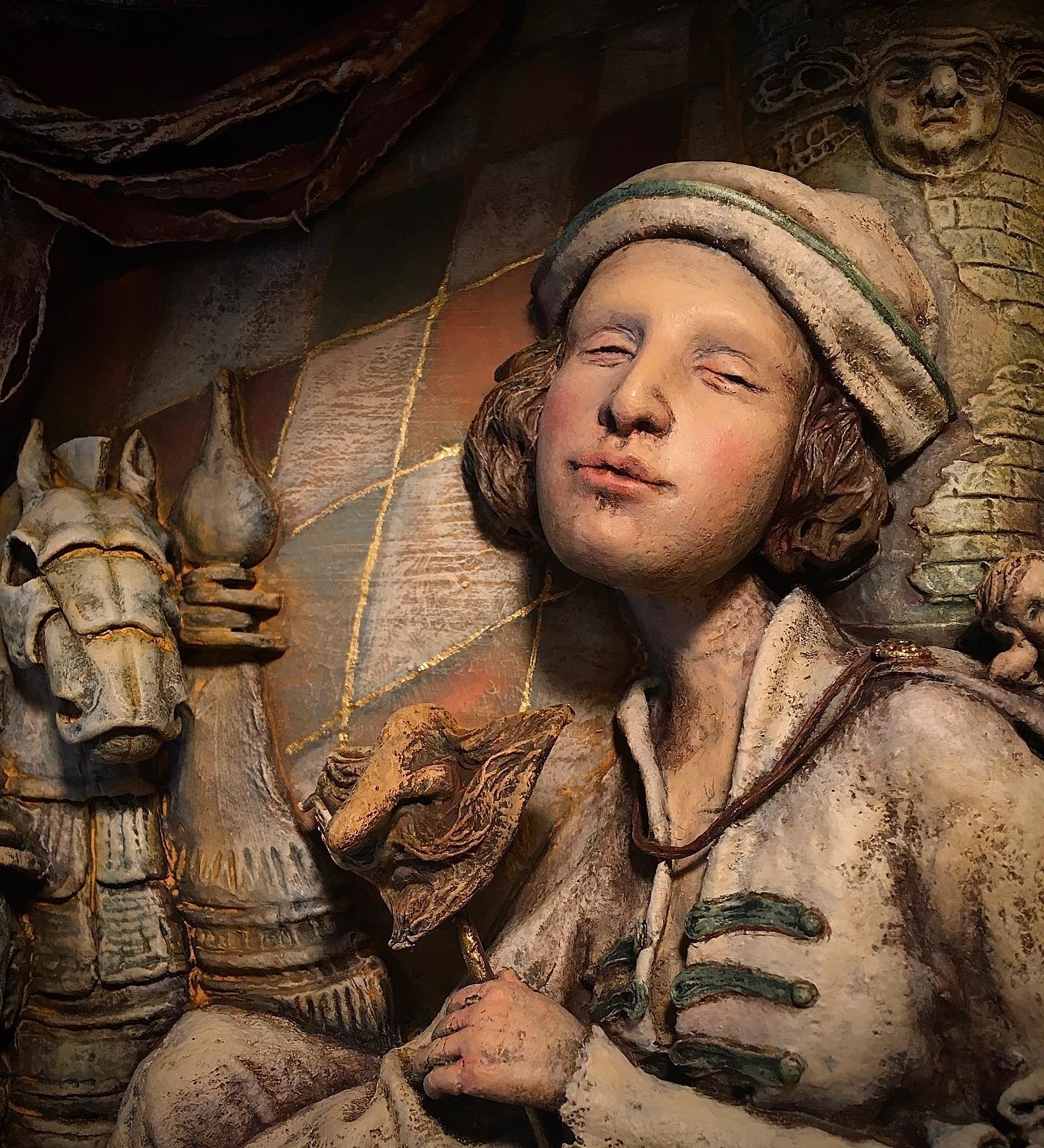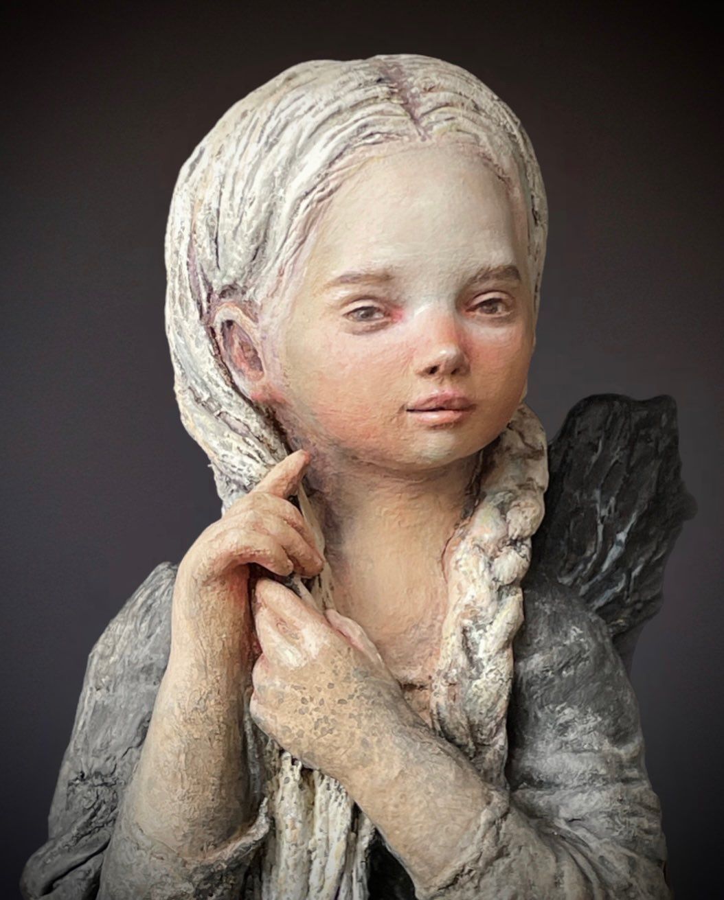 Maria Zherdeva is a Moscow-born sculptor known for her deeply personal and poetic approach to figurative art. Working primarily in high-relief, Maria creates sculptural portraits that feel like quiet windows into other worlds layered with history, tenderness, and emotion. As a child, she exhibited in youth art exhibitions and was accepted into a prestigious art school at the age of 12. She later trained in monumental graphics and icon painting two disciplines that continue to influence her focus on structure, harmony, and symbolism. But Maria’s voice as an artist truly came into its own when she began experimenting with her own mixed-media technique, blending materials like clay, wood, papier-mâché, and tempera into textured, dimensional works that live somewhere between sculpture and painting.