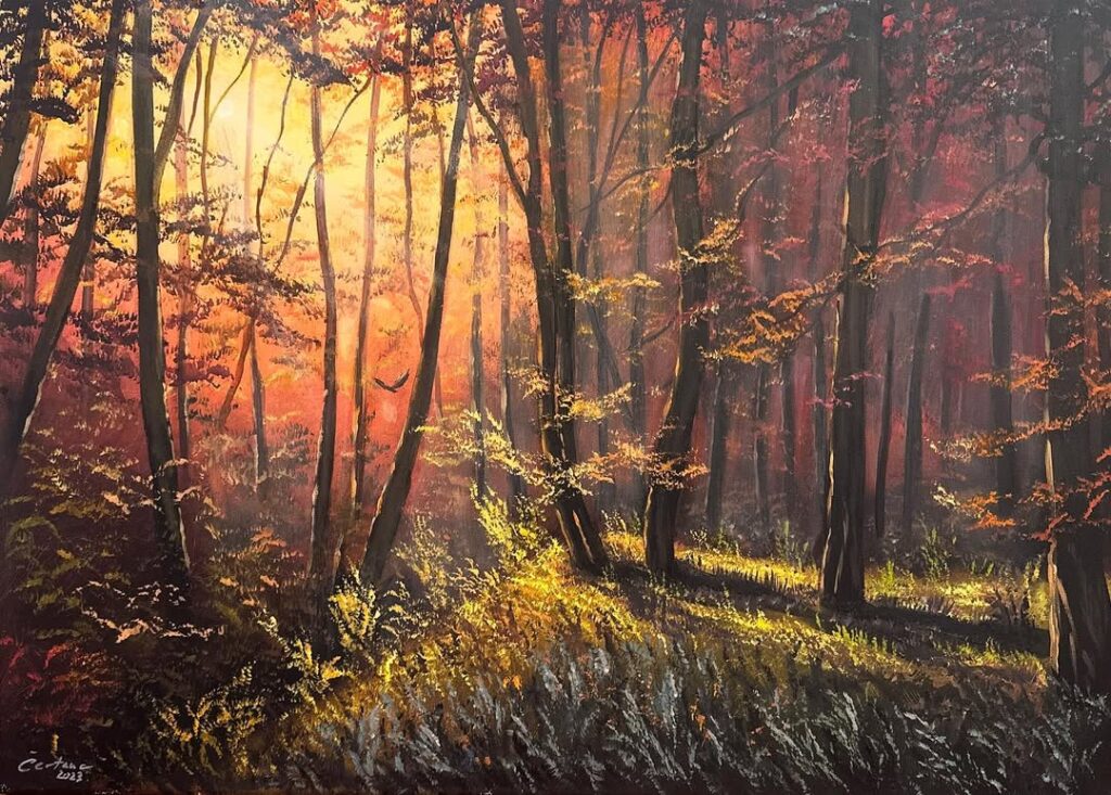 Čertanc doesn’t just paint landscapes; he enters them. Through his use of soft light, delicate tones, and dreamlike space, his paintings hold the calm of distant places and the pull of memory. They carry the kind of silence that feels alive the stillness before dawn, the breath between thoughts. His art reminds us that landscape is not only what we see outside, but something we carry within.