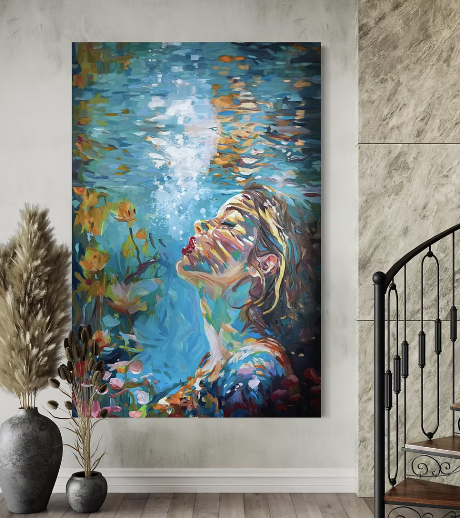 Because her story matters too. So, Sylvia Aka Turlitu never set out to become a full-time artist. It just happened. She studied landscape architecture because she was fascinated by how colour and form interact emotionally. That same curiosity lives in her paintings now. The medium shifted, but the questions stayed. She paints women mostly fictional ones, emotional archetypes rather than specific individuals. Even when she takes commissions, likeness isn’t the goal.