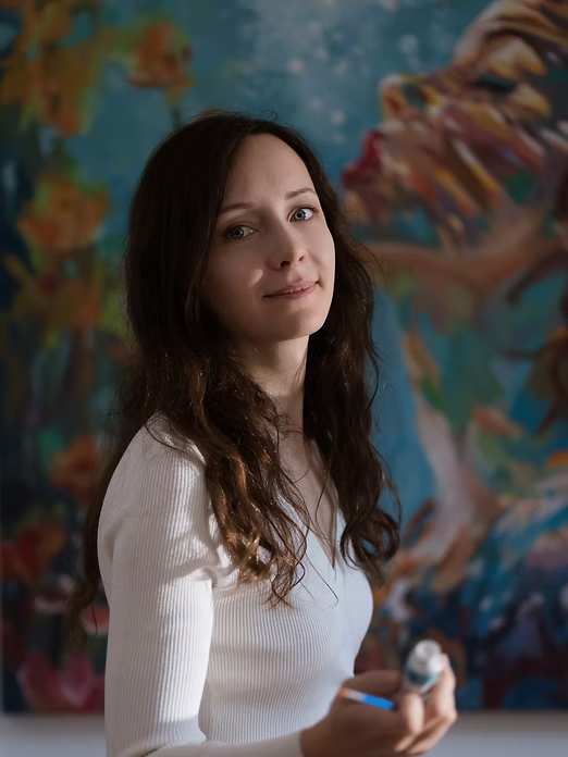 I don’t experience it as tension. The digital layer gives me structure and calm — a quiet starting point. The oil and acrylic layers are where the painting becomes alive. Precision and unpredictability don’t compete in my process; they support each other. One holds the space, the other brings emotion.