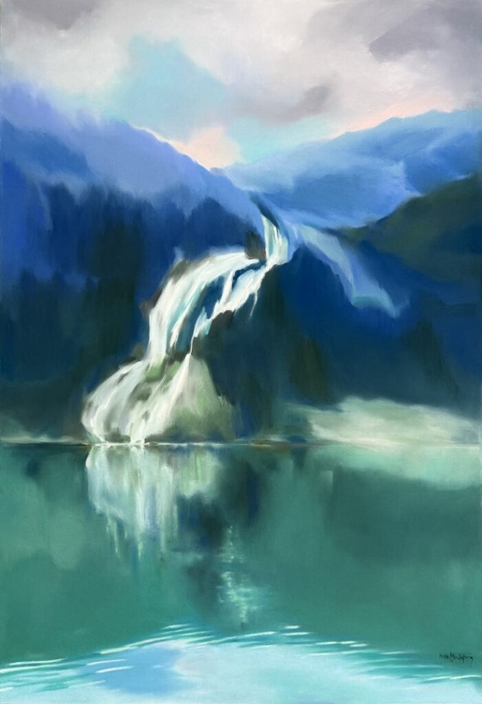 Most of the responses I receive suggest a sense of recognition: viewers often feel that they know the place in the image, or that the atmosphere resonates with something in their own memory. That kind of emotional identification is deeply meaningful to me. One of the most touching responses came in relation to an abstract landscape with a waterfall. A woman initially asked where the place was, as if she wanted to locate it on a map — but then she paused and changed her mind. She realised that she already knew it. It was her place, one filled with personal memories and emotional weight. Her interpretation was profoundly moving to me, and she ended up purchasing the work. Moments like this affirm my belief that the work does not need to describe a specific site in order to be true. When a viewer finds their own landscape within the image, the painting becomes a shared space of memory and feeling — and that, in turn, quietly reinforces my trust in working through atmosphere rather than literal depiction.