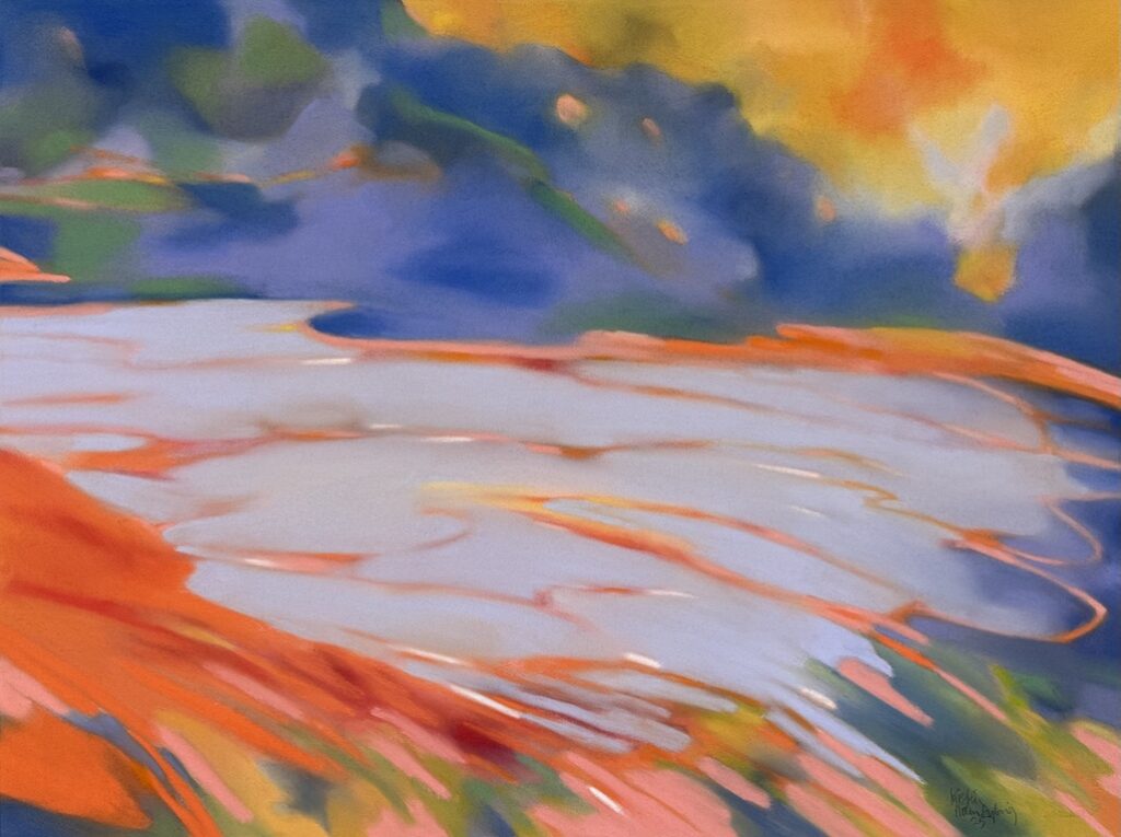 Kristin chose soft pastels. A medium where the pigment sits right on the surface with nothing protecting it. Most artists want their work to be permanent, sealed, stable, safe from the world around it. Kristin chose the opposite. She chose a medium that responds to light and air and touch. That can be smudged with a finger. That feels like it is still settling even after the painting is done.