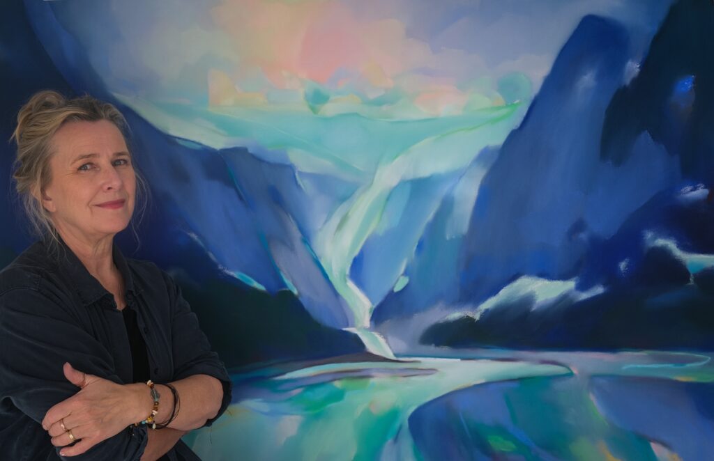 The landscape that surrounds me has shaped me and become part of my inner life. I notice that water is almost always present in my images — in all its forms: streams and rivers, fjords, open sea, wetlands, pools. I live on a peninsula on the Norwegian coast, and water is an inescapable presence here; it naturally permeates my visual language. Often I begin a work in a relatively abstract way, guided by a colour combination that feels compelling. Yet quite quickly an inner need arises to make sense of it all, and at that point landscape forms begin to surface almost inevitably. They are the first shapes I recognise. At other times, when a particular place has left a strong imprint on me, I try to distil it — to find its essence so that the image is freed from literal description. What I ultimately want to convey is the atmosphere I have experienced. That emotional and sensory resonance feels more important to me than faithful representation; it becomes a kind of universal language through which the work can speak.
