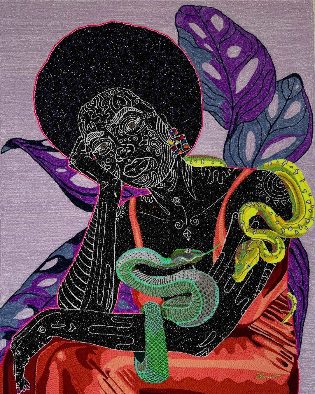 Some artists work with fabric, and then there are textile artists who make you feel the stories woven into every thread. Simone Elizabeth Saunders is one of them. Based in Calgary, Canada, Simone creates vibrant, hand-tufted textiles that celebrate Black womanhood, identity, and heritage. Each piece is more than a portrait; it’s a story of strength, resilience, and connection. Drawing inspiration from her Jamaican roots, art history, literature, and music, Simone transforms threads into powerful narratives. Her textiles invite viewers to pause, reflect, and feel the beauty of culture, community, and personal identity. With every stitch, Simone shows incredible care and attention, turning fabric into something truly meaningful and full of emotion.