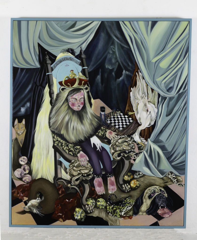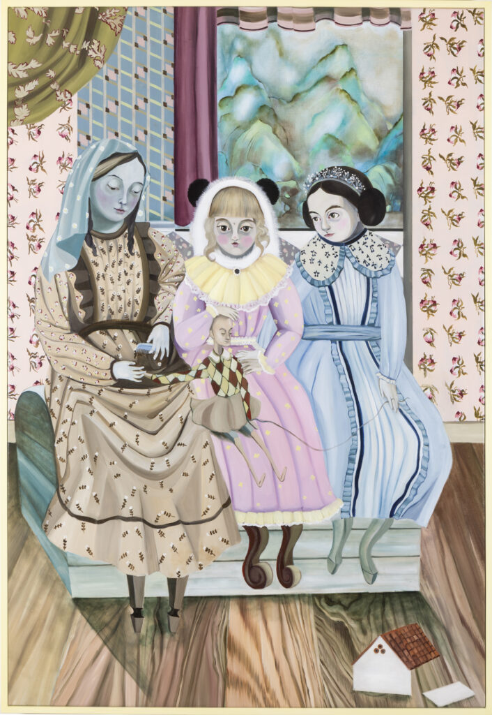 The figures she paints are young women who carry both vulnerability and power in the same breath, who seem frozen in a moment that is somehow still moving underneath. There is something deeply familiar about her worlds and something completely impossible about them at the same time.