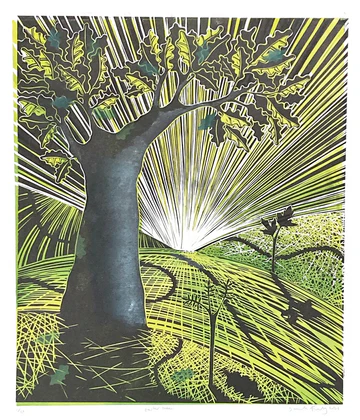 Her process begins with drawing, often from photographs taken while out walking, and then moves into carving and printing. Grace works without a press, printing her linocut and woodcut editions by hand in small batches. This hands-on method allows her to slow down and respond to the material with care, enjoying the variations that come from hand burnishing each piece rather than relying on mechanical reproduction. What stands out in Grace’s prints is the way they hold both simplicity and resonance. Lines feel deliberate, shapes feel balanced, and negative space becomes part of the composition rather than a backdrop. The limited editions she produces carry the quiet mark of time spent with each block and sheet of paper, inviting the viewer to share in that same attentive pace. Over the past few years, Grace’s work has been shown in local exhibitions and selected open shows, and she was chosen to take part in Sky Arts Landscape Artist of the Year in 2022, where she created a reduction woodcut print inspired by Whitstable Harbour. These moments of recognition reflect not just her skill with the medium, but the way her work resonates with audiences who are drawn to its thoughtful presence. Through her linocut and related printmaking, Grace Edkins reminds us that print isn’t just a technique but a way of seeing a slow, careful, and ultimately generous way of holding space for the quiet details of the world.