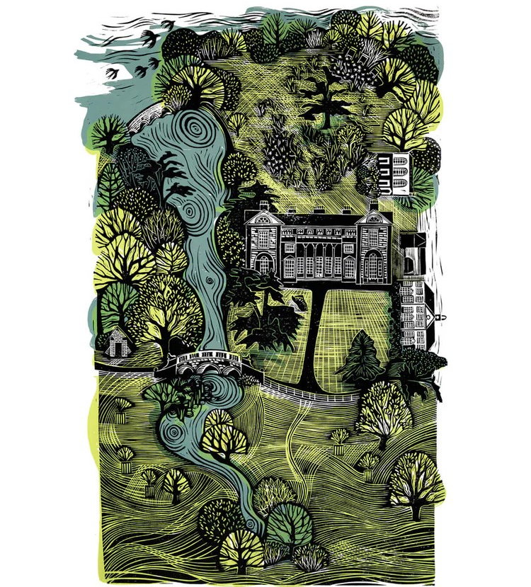 Similarly, nature and green spaces hold a personal significance. Growing up next to the Botanic Gardens in Cambridge and tending a small-town garden and allotment herself, she brings a lived affection for plants, trees, and cultivated spaces into her practice. In recent projects, she’s looked more deeply at how gardens and countryside connect to local history and community life, not as picturesque backdrops but as places of solace and inspiration. What makes Sarah’s work distinctive is how quietly it balances observation and expression. Her linocut prints are never about decoration alone. Instead, they invite you into familiar places with fresh attention, capturing the calm humanity in both architecture and natural forms. They feel like thoughtful reflections rather than quick impressions. Through her practice, Sarah Kirby shows that linocut can hold space for both personal experience and shared memory. Her prints reveal what it feels like to live in, move through, and care about the places around us, giving everyday scenes a visual weight that stays with you long after the first look.