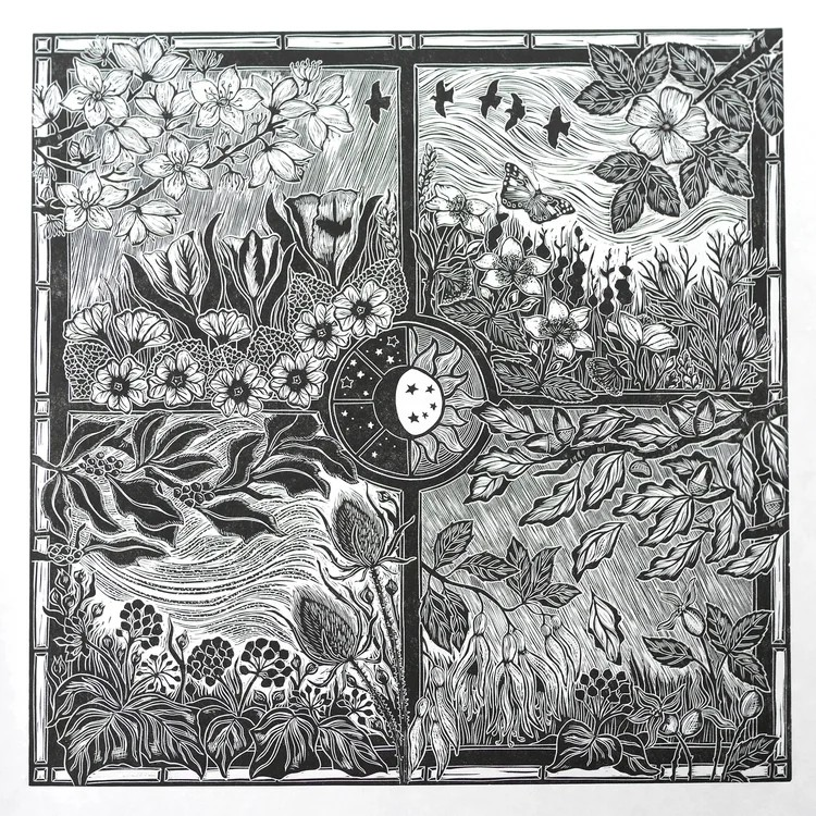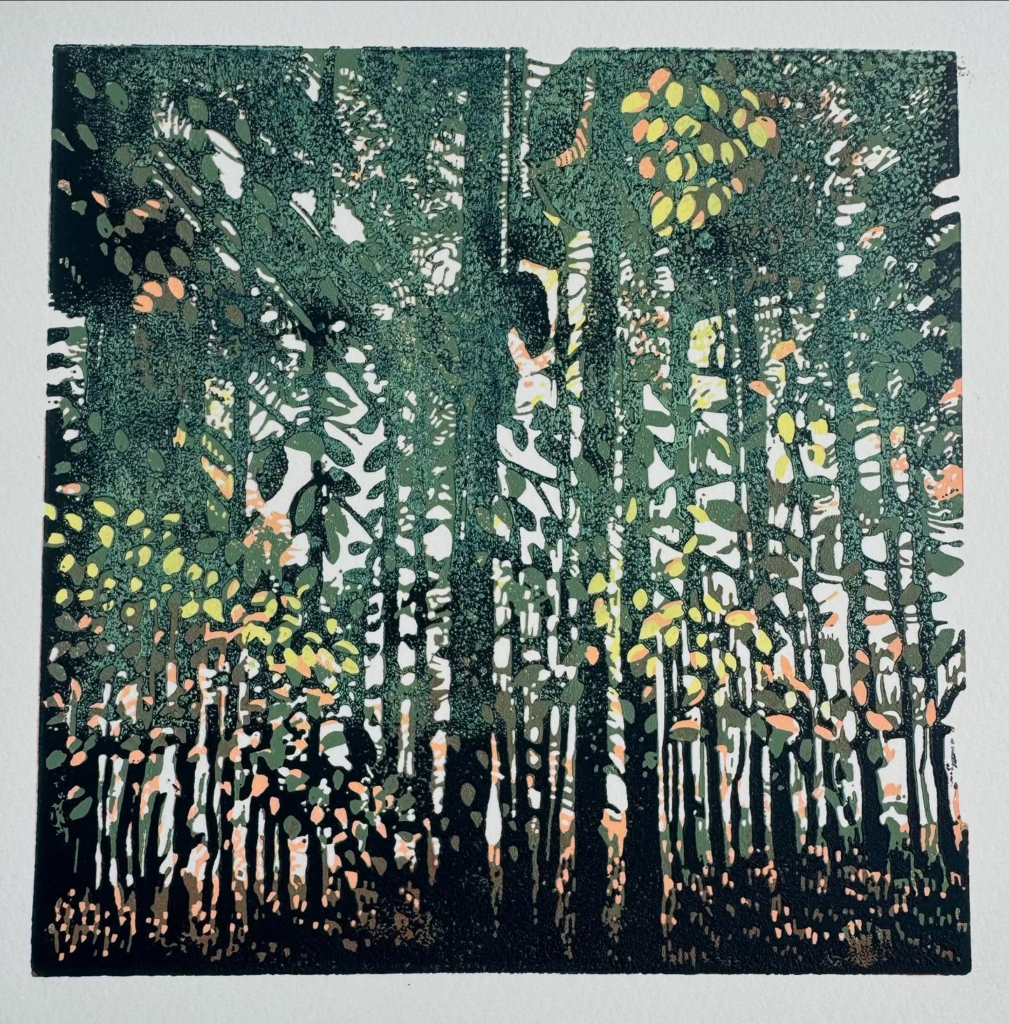 Grace Edkins makes prints that feel rooted in the rhythms of nature and the quiet beauty of familiar places. Based in the fishing town of Leigh-on-Sea on the Essex coastline, she is a self-taught printmaker who works primarily in relief methods like linocut and woodcut, often blending the two to create images that reflect the landscape she lives within.Her introduction to printmaking came later in life, sparked during the first lockdown, when a change of pace allowed her to explore making art around the rhythms of family life. That shift marked the beginning of a practice shaped by slow looking, careful observation, and a willingness to let process lead. Grace’s work draws its energy from the flora and fauna of the local area, inspired by walks across marshes, along water’s edge, and through seasonal shifts that subtly shape the world around her. Rather than chasing dramatic vistas, she finds depth in the often overlooked: the way light catches on brambles, the texture of reeds in winter, or the delicate outline of wildflowers. This attention to detail gives her prints a calm intensity that feels intimate and grounded in lived experience.