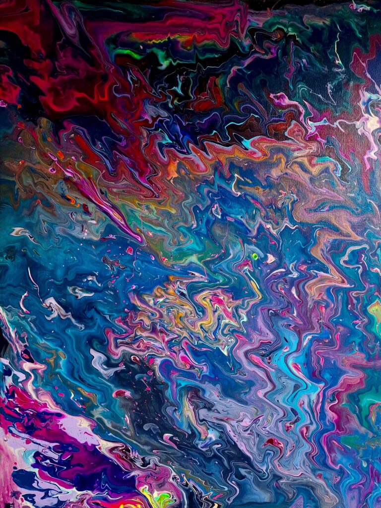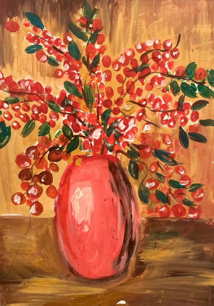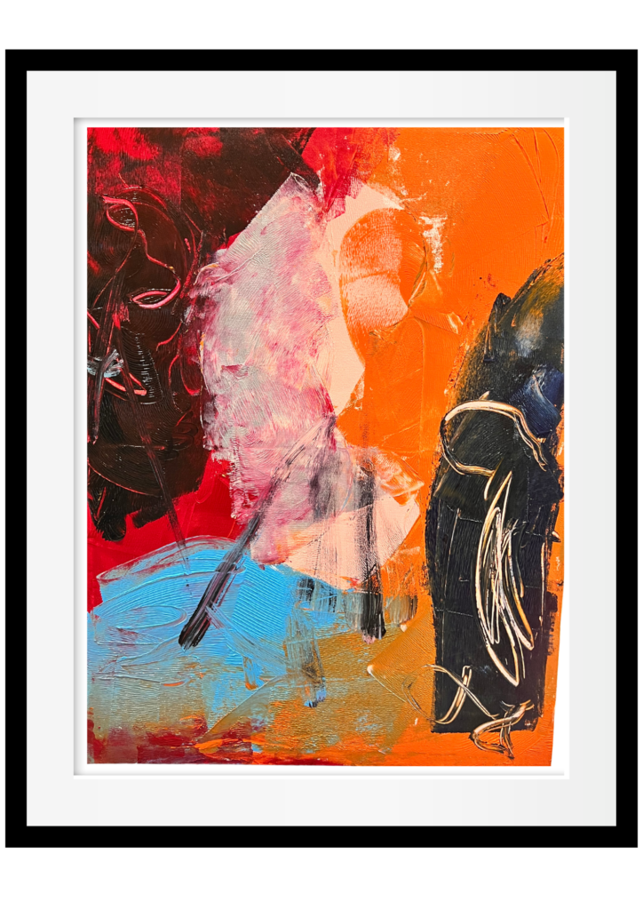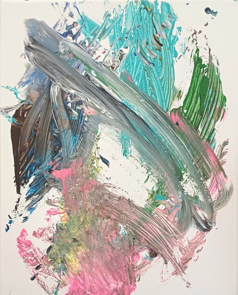 The artworks shift between bold expression and quiet reflection. Some pieces carry a sense of movement and energy, while others feel still and contemplative. Colors, forms, and marks appear not as formal decisions, but as natural responses to thought and feeling.