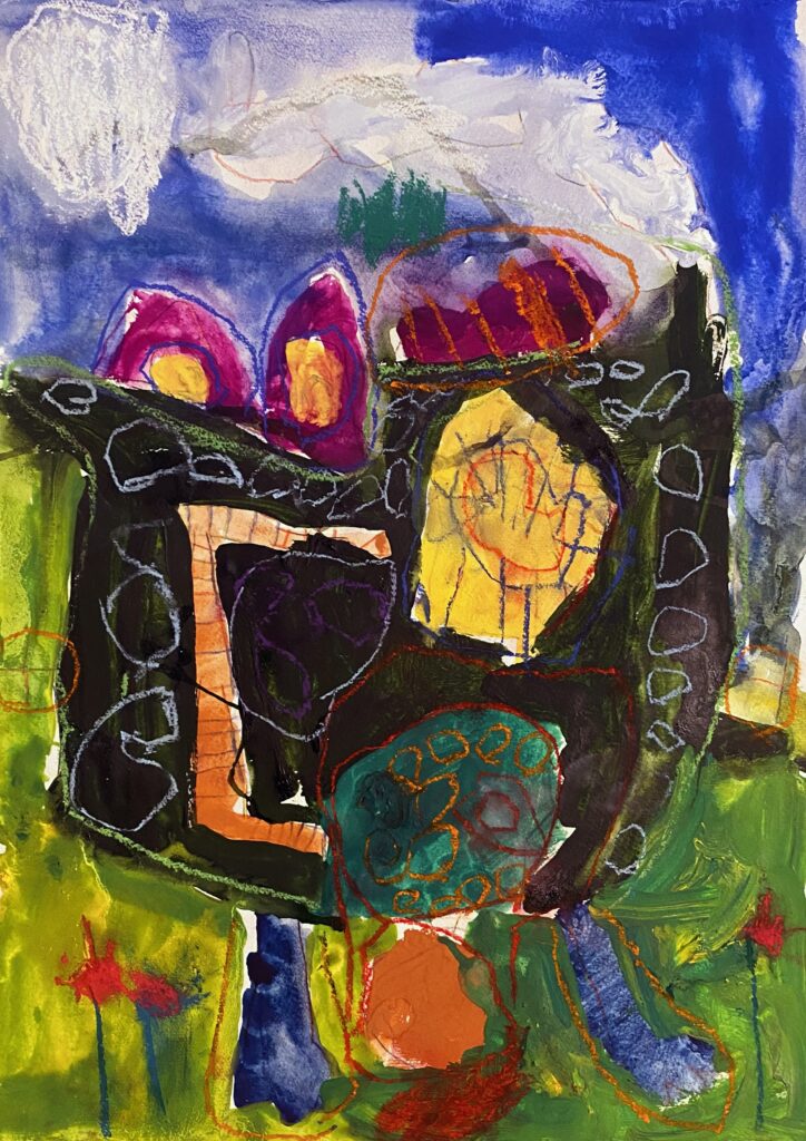 Everyday subjects are transformed through perspective. Familiar spaces become imaginative environments. Animals, shapes, and figures take on emotional weight rather than literal meaning. The works do not aim for realism. They aim for truth as felt by the maker.