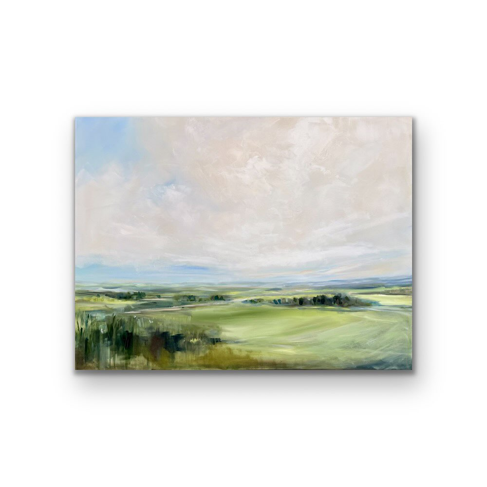 When Jodi Miller paints landscapes, she isn’t just showing us wide horizons she’s painting what hope feels like. Based in Saskatoon, Saskatchewan, her work is instantly recognizable: sprawling skies, energetic brushstrokes, textures that let you sense wind, light, and distance. Jodi Miller With acrylics and large brushes, she builds her canvases in layers of colour, of light, of metaphor. The sky in her paintings isn’t just a part of nature; it becomes something bigger. It’s endless potential, growth, renewal. It feels like promise, like a stretch of possibility beyond what we see. Jodi’s travels and love for impressionist masters show up in her style not as imitation, but as inspiration. She takes what she’s seen in her journeys, what she’s felt in quiet moments, and blends that with her own voice.