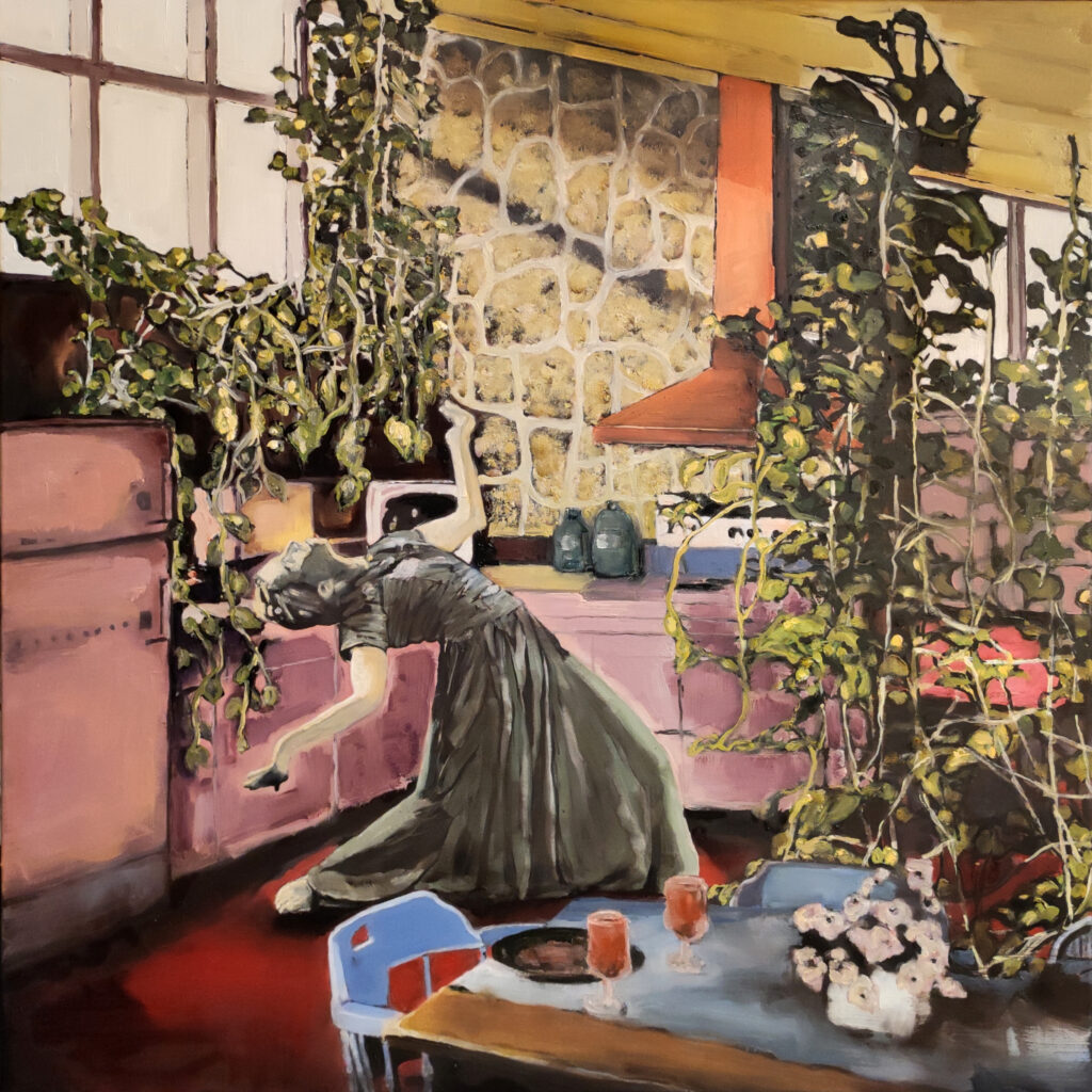 Depending on whether there are some parameters in place, like making new work for a themed exhibition or, as I recently had the opportunity of doing, being invited to a residency at the Vincent van Gogh House where the work had to relate to Van Gogh in some way, the process can vary. But I generally start from images that I have collected. In the past those were physical images like photographs, postcards, etc. but nowadays I find them mostly on the internet. I collect them without much thought, perhaps on the basis of some subconscious trigger, but there is obviously something that attracts me to them. When preparing for a new series of work I will be juxtaposing them on the screen and by doing so a certain theme or meaning will emerge, after a bit of time has passed. I then make digital sketches of the selected works, often in a collage format, which will serve as a basis for the paintings. Because I work with oil paint I usually work on multiple pieces at the same time. Which is also helpful because working on one piece alone can result in you losing the oversight of the idea you had and losing the insight of whether the painting is good or not. It’s best to then leave them for a while and I will often find that they have ‘finished themselves’.