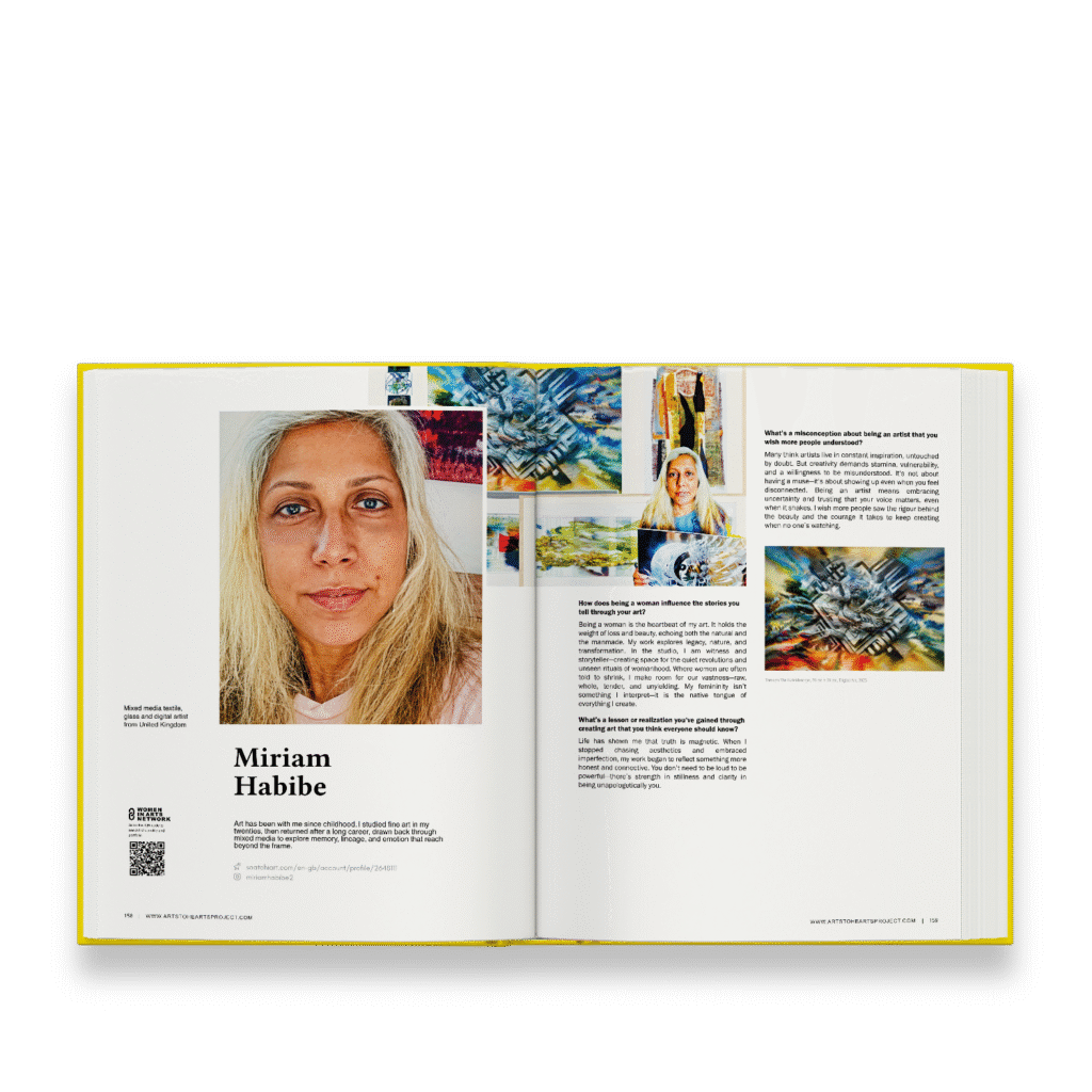 Miriam Habibe is a featured artist in our book, “Art and Woman 2025” You can explore her journey and the stories of other artists by purchasing the book here: