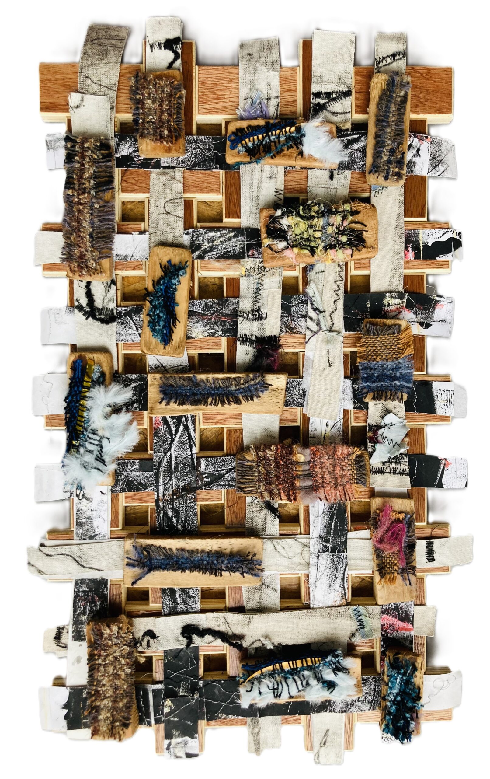 Miriam Habibe is an emerging Welsh-based artist of BAME South Asian heritage whose creative journey embodies resilience, identity, and self-discovery. After years devoted to parenthood and a full-time career, she has returned to her artistic roots, crafting deeply ex-pressive works that bridge tradition and modern experimentation. Drawing inspiration from craft forms like weaving, she merges abstraction and mixed media techniques, forging an artistic voice that is uniquely hers. A defining aspect of Miriam’s practice is the Japanese SAORI weaving philosophy, which celebrates intuitive creativity and unfiltered self-expression.