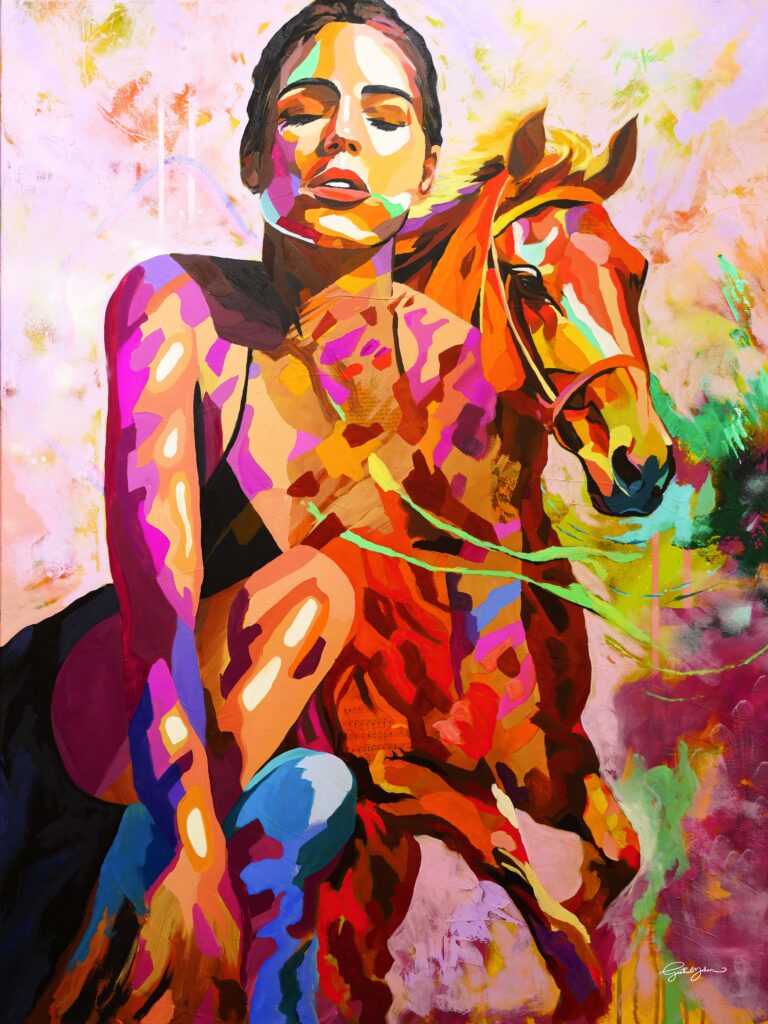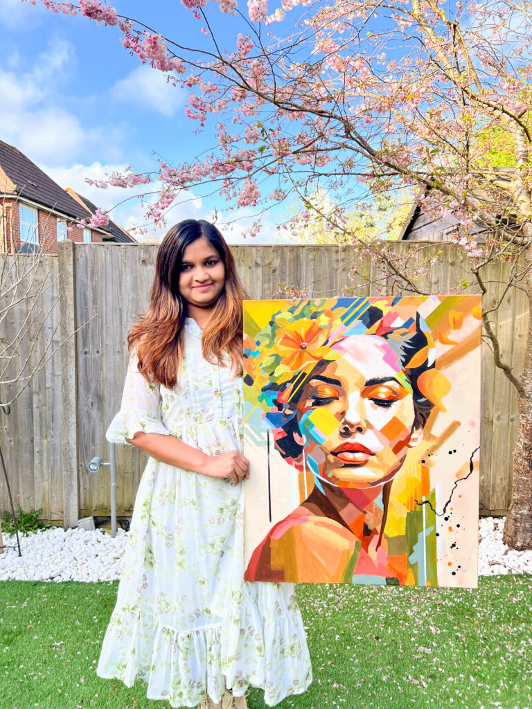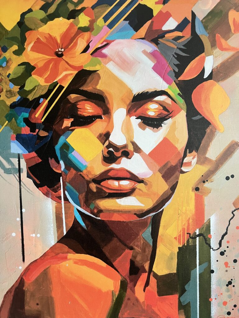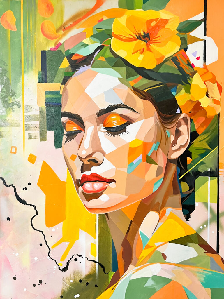 Yes, absolutely. Dancing with Sunshine was a very clear turning point for me, both technically and creatively. It was the first time I consciously applied my understanding of facial planes instead of trying to soften and blend everything in a more traditional way. I allowed the structure of the face to show, and leaned into a pop art, slightly cubist language that felt bold and vibrant. What’s interesting is that even before I shared it anywhere, I knew something had clicked. As I was painting it, there was this strong internal clarity, this certainty that this was how I wanted my portraits to exist going forward. It felt truer to me than soft, polished realism ever had. The angles, the planes, the graphic quality of the face paired with expressive colour and abstraction, it all suddenly clicked into place. The fact that it went viral and sold immediately was validating, of course, but that wasn’t what made it special. The real moment happened earlier, alone in the studio, when I realised I had found a visual language that felt like home. Dancing with Sunshine showed me that I didn’t need to fit into existing portrait traditions to be taken seriously. I could honour structure, strength, and expression in my own way, and that discovery has shaped every portrait I’ve created since.